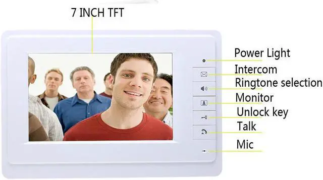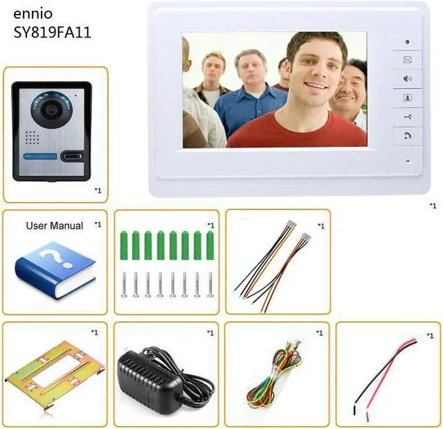 Night Vision Features: Aluminum alloy panel of indoor unit, fashionable and luxury. Little rain and oxidation-proof for the durable aluminum alloy outdoor unit. 7" color TFT LCD without radiation, low power consumption and high definition. IR Camera with Night Vision. Electric lock-control function. Handfree intercom. Mute indoor intercom function. Monitoring the outside of the door. 16 kinds of door bell rings. Volume, brightness and contrast adjustable. Easy installation by yourself with adapter and cable we provide in this kit.