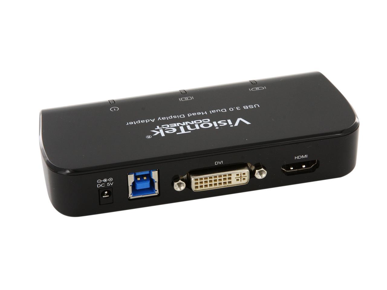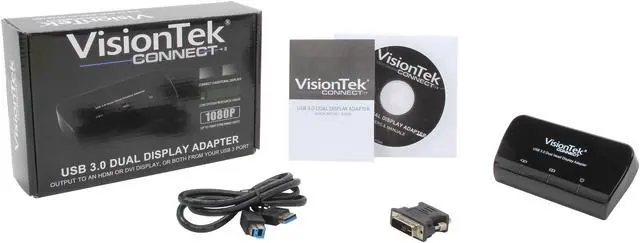 | Package Contents | VisionTek USB 3.0 Dual Display adapter CD (Driver & Users Manual) Quick Install Guide Power Adapter |