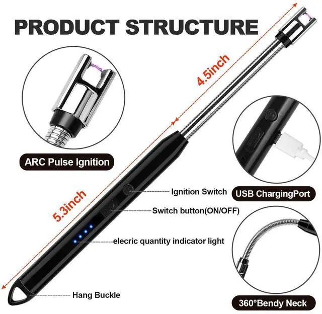 The rechargeable plasma lighter has a 3.2-inch 360° rotating flexible neck for a variety of scenarios.