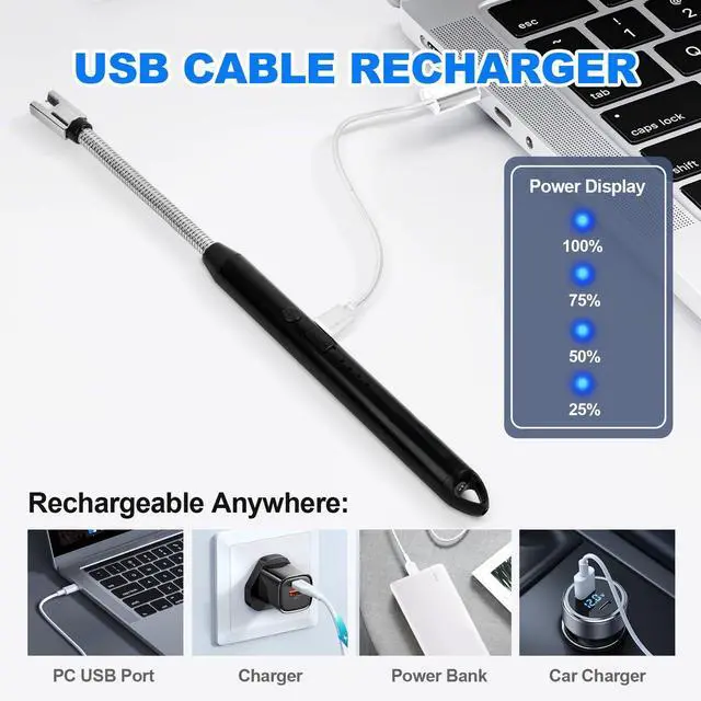 Easy hang,electric candle lighters rechargeable can be hung on kitchen walls, windows, doors and etc, for convenience.