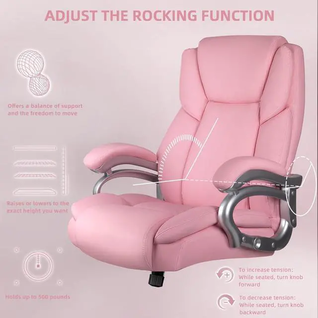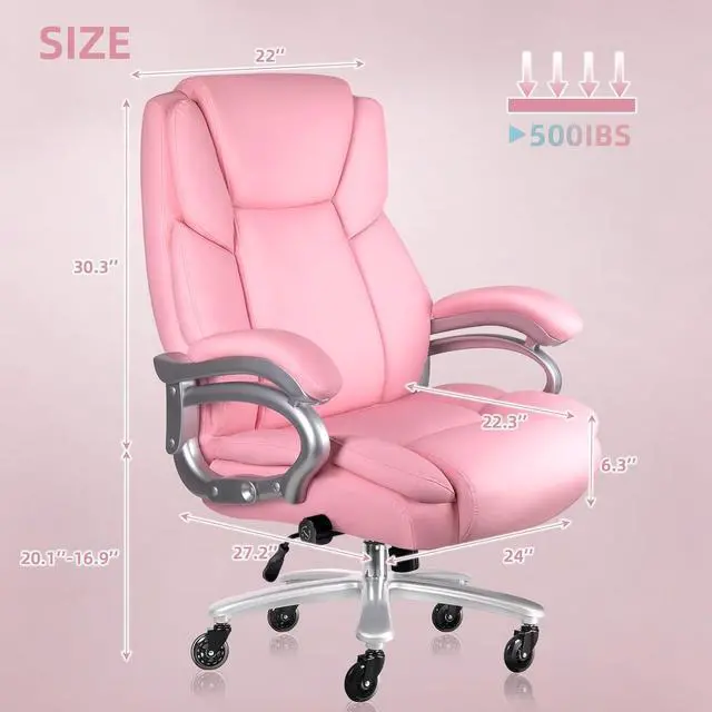 BIG AND TALL OFFICE CHAIR: Made of soft and comfortable PU leather and high elastic sponge cushion, excellent sitting sensation, and built-in lumbar support and a padded seat with thick and soft memory foam cushioning. All the characteristics make its a perfect executive office chair for big and tall adult. If you spend long hours at the desk and pursue comfort, support, and functionality, the 500lbs computer chair is exactly your choice