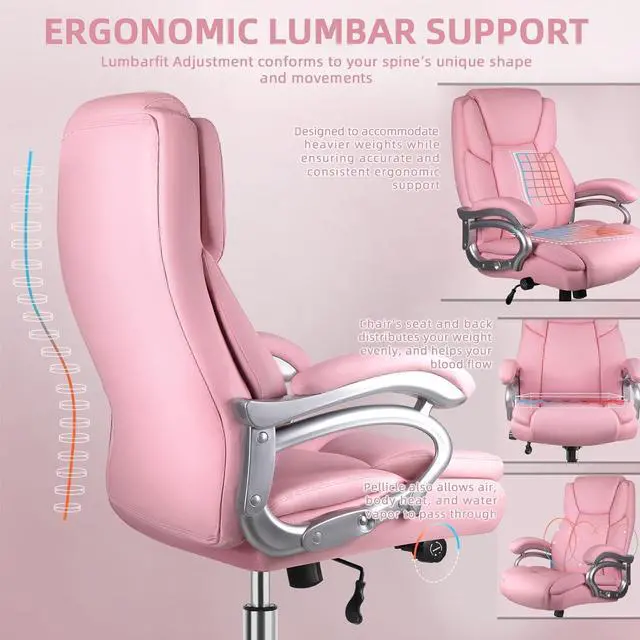 ERGONOMIC LUMBAR SUPPORT: This comfortable office desk chair is designed with a 5' thick cushion and a wrap-around cushion and high backrest that perfectly contours to your back and hips. Wide desk chair reduces the stress of sitting and helps you work more easily