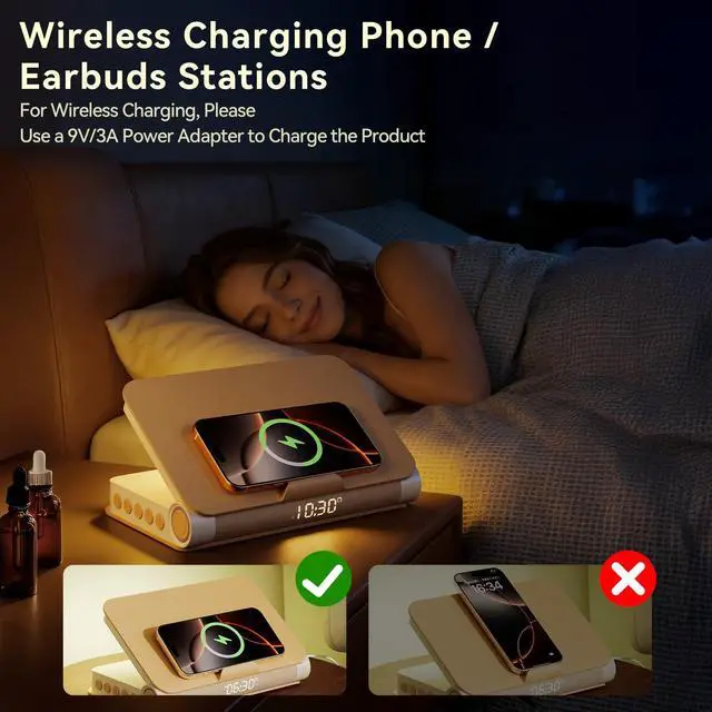 Sunrise Alarm Clock with Wireless Charging Station Bluetooth Speaker Loud for Heavy Sleepers Adults Aesthetic Book Wake Up Light for Bedroom Decor Dimmable Bedside Lamp Tech Birthday Gift