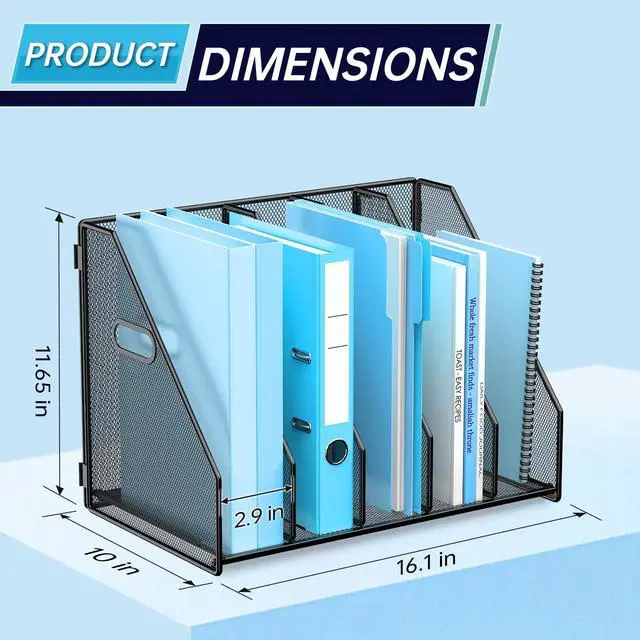 Multifunctional Magazine Holder: MINDEPOT file rack can hold magazines, files, binders, books and a variety of office supplies, our vertical file organizer is the perfect practical storage solution for home, office and school.