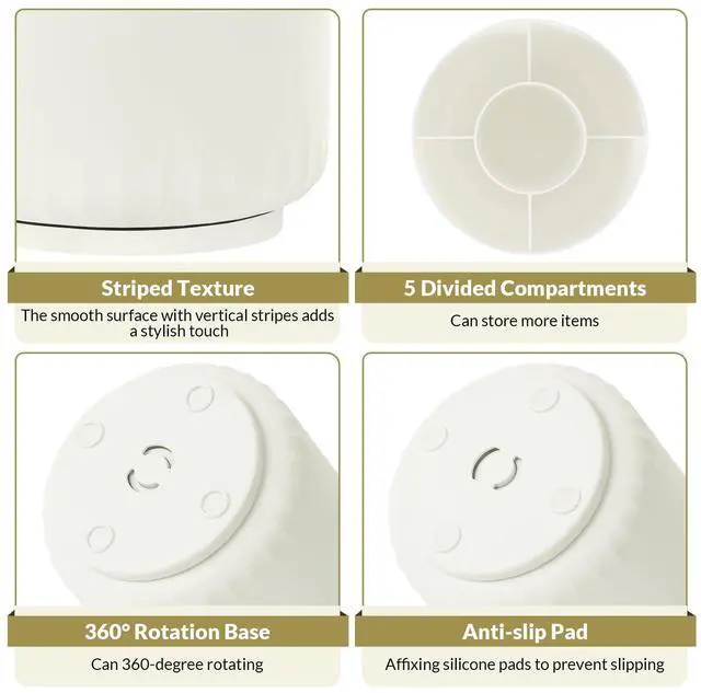 The 360° Degree Rotating Desktop Organizer offers a practical solution for your makeup brushes, eyeliners, lipsticks, and other beauty products.