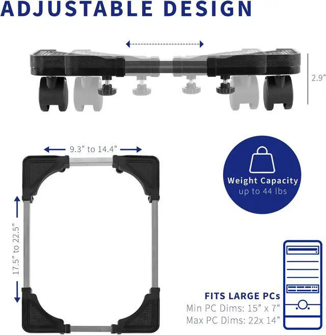 • Fits Large PC Towers - Cart is adjustable to fit most large gaming PC towers from 15L x 7W to 22L x 14W. The textured grip and non-slip surface hold your CPU firmly in place and protect it from scratches and damage.