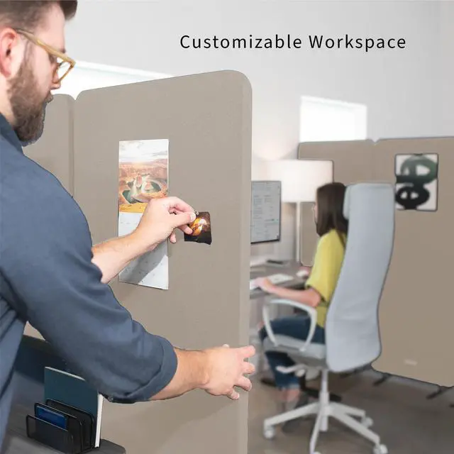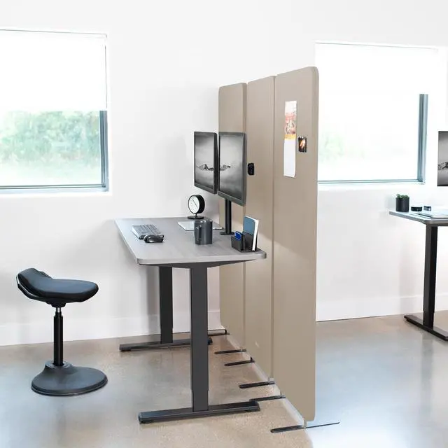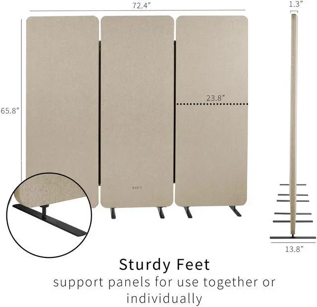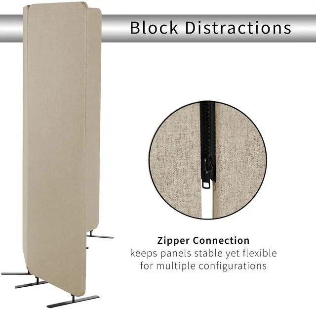 Create much-needed privacy and limit distractions with the Beige 72 x 66 Freestanding Room Divider (PP-3-T072BE) from VIVO! Whether you want to divide one work area into multiple sections or simply surround your desk with privacy panels, these dividers will get the job done with flexible zipper connections and freestanding feet. If your desk is located in a high-traffic area, you can enjoy the added privacy that a 66 high panel provides. Customize your space to let creativity flow, using the tackable material to pin up photos, fun quotes, to-do lists, and more. Instructions are provided to get your new panels connected and transforming your office layout in no time!