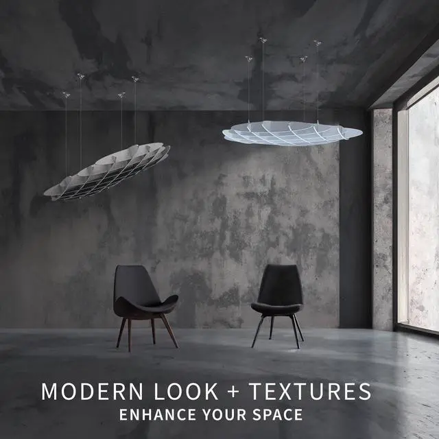 Are you tired of losing your concentration in a noisy office? Instead of getting discouraged, its time to get creative with the Light Gray Acoustic Ceiling Waffle Panel (PP-CW01G) from VIVO! Crafted from advanced acoustic polyester fiberboard, this ceiling panel is a master sound absorber that will help mute unwanted background noise in previously echo-prone areas. Not only does this versatile product enhance acoustics; its also a statement piece! The waffle chandelier design disperses light to create a mesmerizing effect in any space.