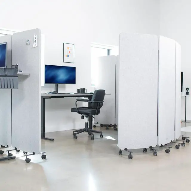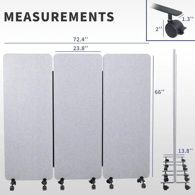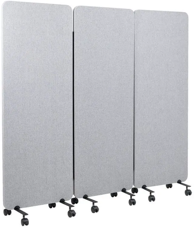 Create much-needed privacy and limit distractions with the Gray Mobile Freestanding Room Divider (x3) (PP-3-T072G-M) from VIVO! Whether you want to divide one work area into multiple sections or simply surround your desk with privacy panels, this divider gives you options with flexible zipper connections and freestanding feet with universal casters. If your desk is located in a high-traffic area, you can enjoy the added privacy that a 66 high panel provides. Customize your space to let the creativity flow, using the tackable material to pin up photos, fun quotes, to-do lists, and more. Minimal assembly is required to get your new panel ready to use and improving your workspace in no time!