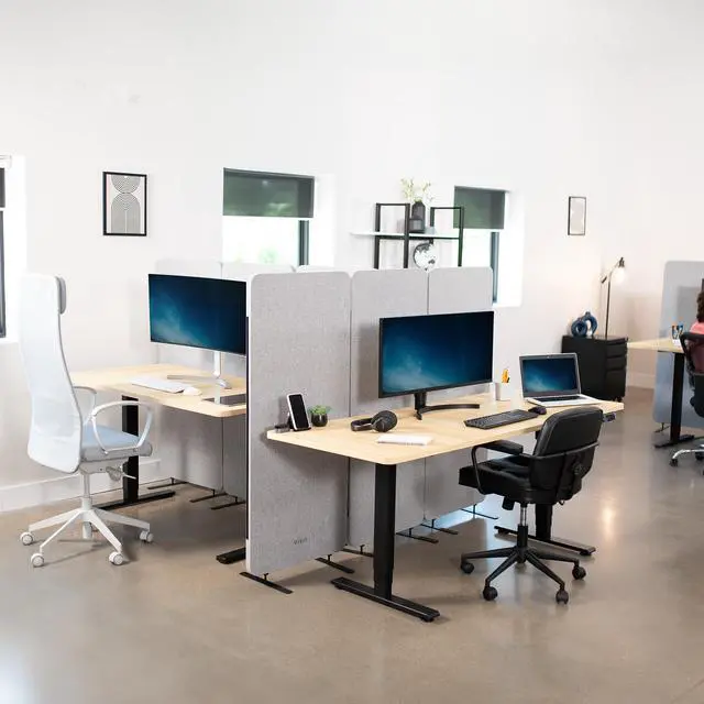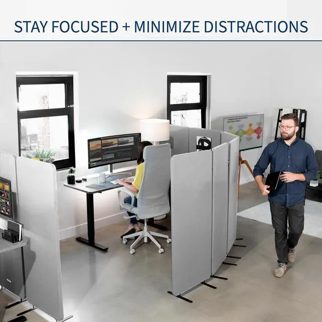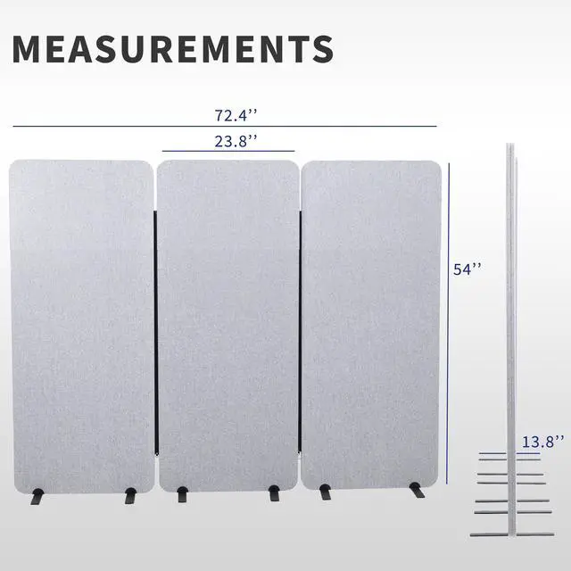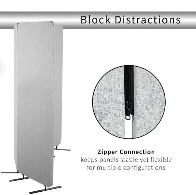 Create much-needed privacy and limit distractions with the Gray 72 x 56 Freestanding Room Divider (PP-3-S072G) from VIVO! Whether you want to divide one work area into multiple sections or simply surround your desk with privacy panels, these dividers will get the job done with flexible zipper connections and freestanding feet. If your desk is located in a high-traffic area, you can enjoy the added privacy that a 56 high panel provides. Customize your space to let the creativity flow, using the tackable material to pin up photos, fun quotes, to-do lists, and more. Instructions are provided to get your new panels connected and transforming your office layout in no time!