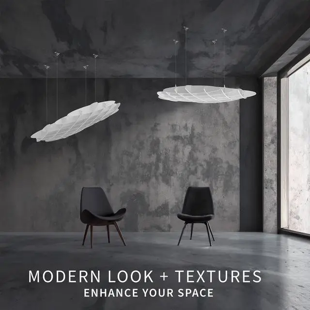 Are you tired of losing your concentration in a noisy office? Instead of getting discouraged, its time to get creative with the White Acoustic Ceiling Waffle Panel (PP-CW01W) from VIVO! Crafted from advanced acoustic polyester fiberboard, this ceiling panel is a master sound absorber that will help mute unwanted background noise in previously echo-prone areas. Not only does this versatile product enhance acoustics; its also a statement piece! The waffle chandelier design disperses light to create a mesmerizing effect in any space.