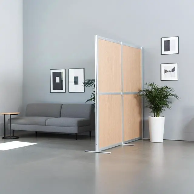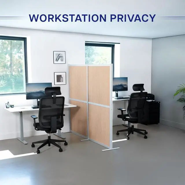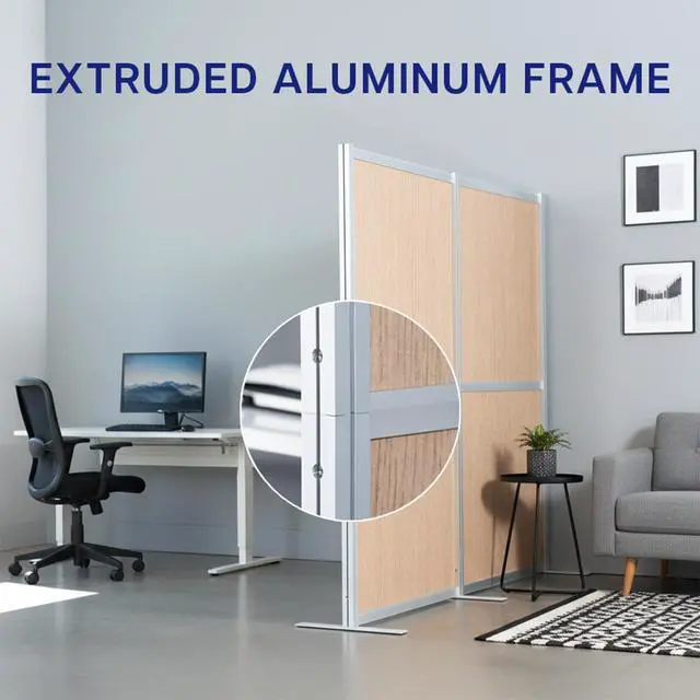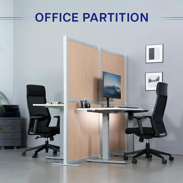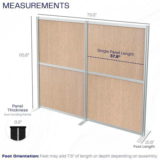 Create instant privacy with the Flat Wood Panel Modular Wall System (x2) (PP-MWS63C) from VIVO! Dual-panel design allows easy placement for versatile use, and the wood grain-colored fabric provides privacy in any setting. Solid steel feet, along with an aluminum frame, give excellent support for the panel system while also allowing it to be easily moved or repositioned. The PET is made from 60% recycled material and maintains a low profile in a variety of office and home environments. Whether you need a room divider, cubicle partition, study area, or more, these multi-use panels have you covered!