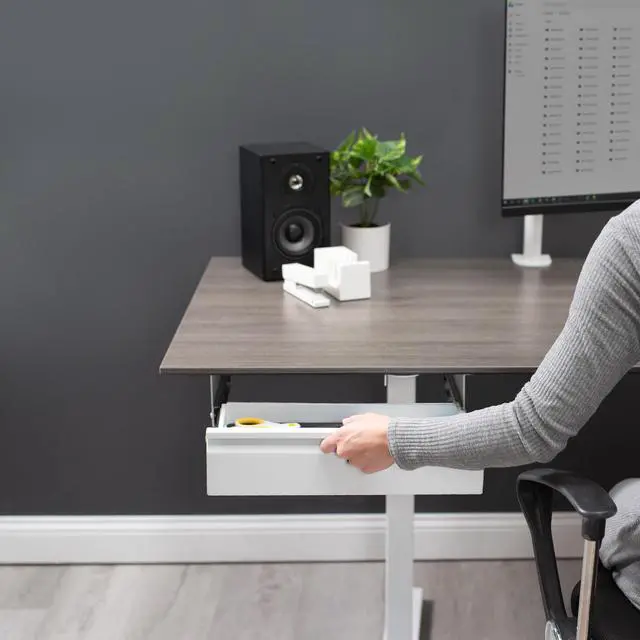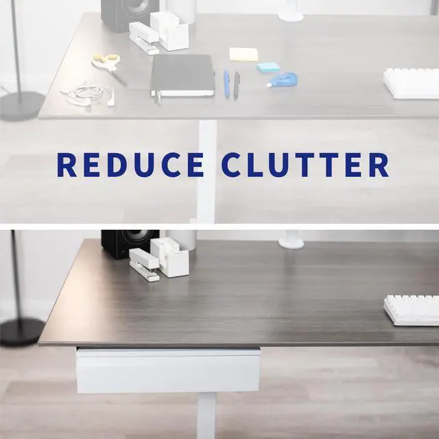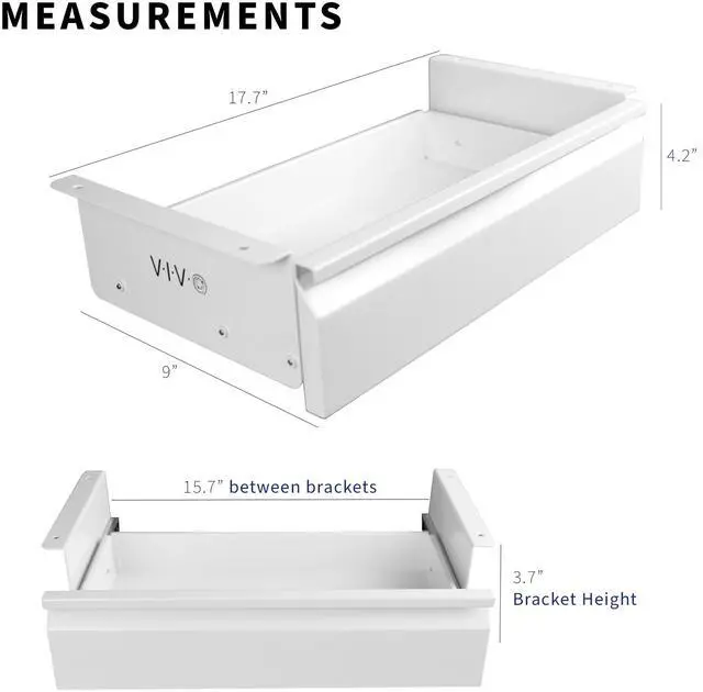 Declutter your workstation and enjoy a clean space with the 16 White Pull Out Under Desk Drawer (DESK-AC03A-W) from VIVO! This sturdy product can hold a wide variety of items that might otherwise take up space on your desk. Access your materials without disturbing office neighbors thanks to the quiet, smooth sliding mechanism. This versatile drawer is compatible with most types of desks measuring at least 3/4 in thickness and able to hold up to 16.8 lbs (drawer supports 11 lbs and weighs 5.8 lbs). The sleek, steel design blends well with a majority of environments whether at home or in the office. This product requires minimal assembly and installation, so you can start storing your materials in no time!