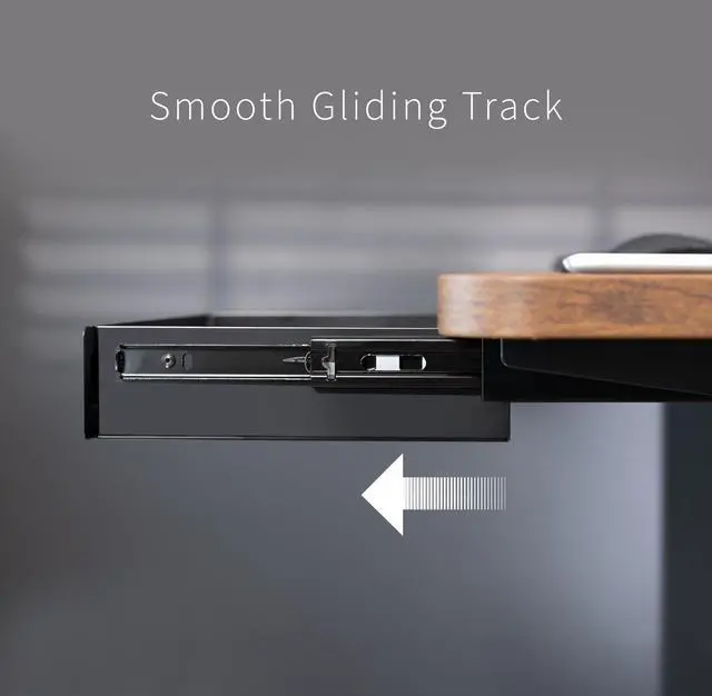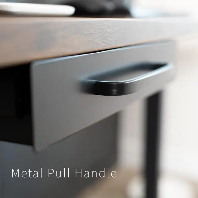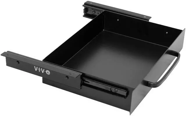 Declutter your workstation and enjoy a clean space with the Black Under Desk Drawer with Pull Handle (DESK-DR1H-B) from VIVO! This sturdy product can hold a wide variety of items that might otherwise take up space on your desk. Access your materials without disturbing office neighbors thanks to the quiet, smooth sliding mechanism, and the sleek front handle lets you pull the drawer in and out effortlessly. This versatile drawer is compatible with most types of desks measuring at least 0.75 in thickness and able to hold up to 14.9 lbs (drawer supports 11 lbs and weighs 3.9 lbs). The sleek, steel design blends well with a majority of environments whether at home or in the office. This product requires minimal assembly and installation, so you can start storing your materials in no time!