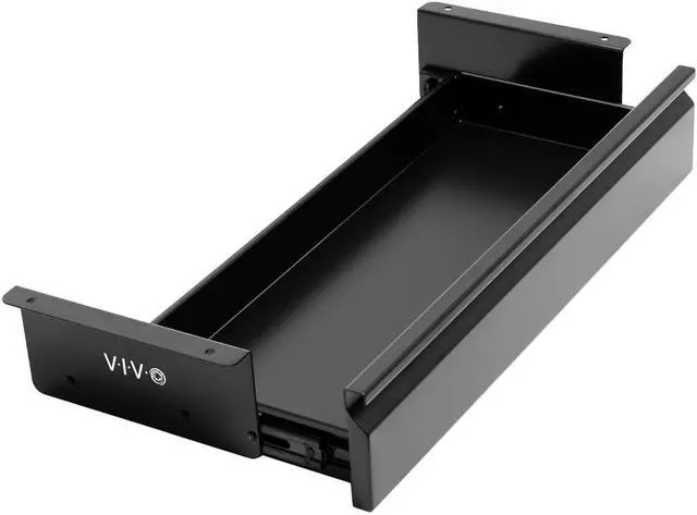 Declutter your workstation and enjoy a clean space with the 22 Black Extra Wide Under Desk Drawer without Shell (DESK-AC03A-22B) from VIVO! This sturdy product can hold a wide variety of items that might otherwise take up space on your desk. Access your materials without disturbing office neighbors thanks to the quiet, smooth sliding mechanism. This versatile drawer is compatible with most types of desks measuring at least 3/4 in thickness and able to hold up to 18.4 lbs (drawer supports 11 lbs and weighs 7.4 lbs). The sleek, steel design blends well with a majority of environments whether at home or in the office. This product requires minimal assembly and installation, so you can start storing your materials in no time!
