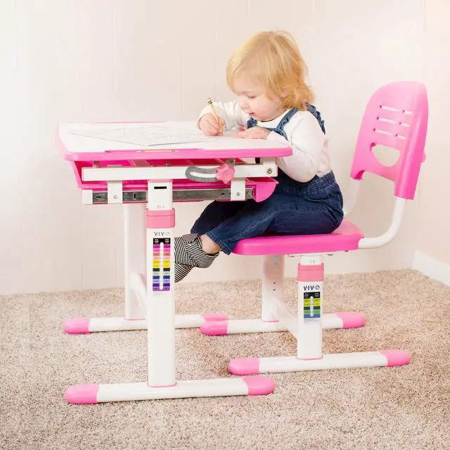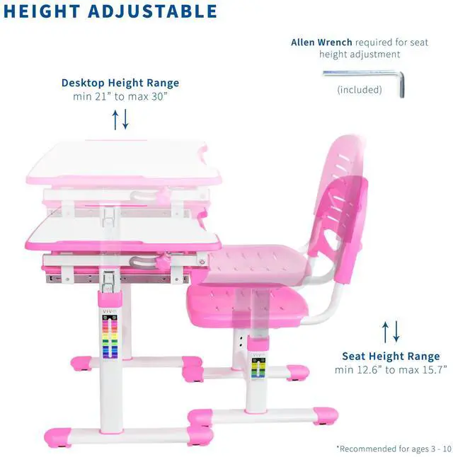 Adjustable smart desk for children (DESK-V201P) from VIVO. This interactive desk and chair station combines fun and safety for kids of varying age and size! It is perfect for kids' rooms, study areas, and more.