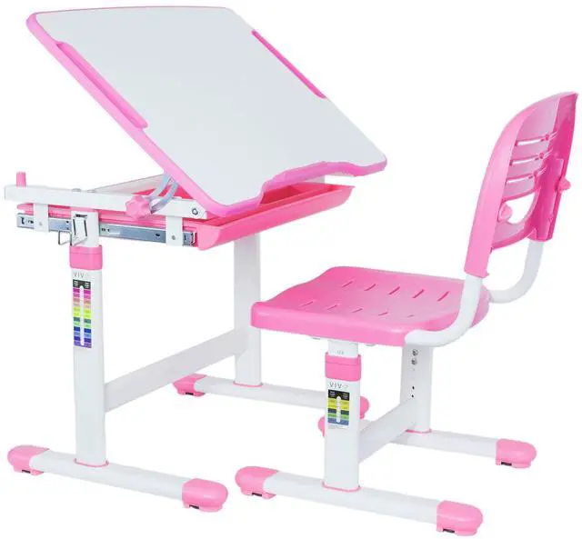 - DESK-V201P features an adjustable tilting surface (from 0 to 40 degrees) made of sturdy PP grade plastic, and an organized pull out drawer for storing papers, coloring books, coloring utensils, etc.