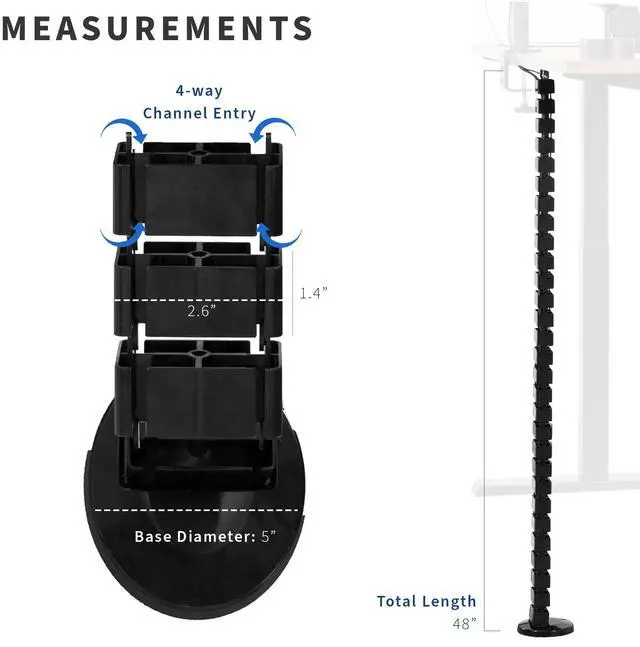 Vertebrae square cable management clips (DESK-AC01C) from VIVO. This flexible strip provides modern and attractive desk to floor cable management for your work area. DESK-AC01C is built with ergonomics and versatility in mind, featuring a quad entry cabling system for efficient cord organization. Keep unsightly and hazardous A/V and power cords clean and protected with this convenient addition to your work environment.