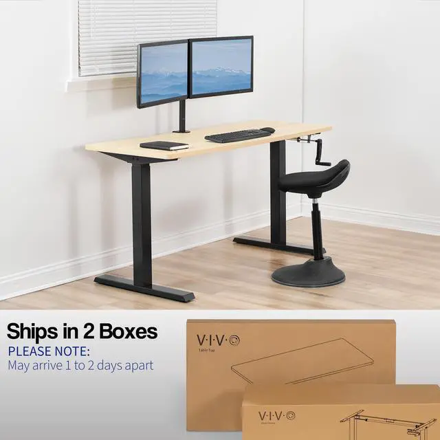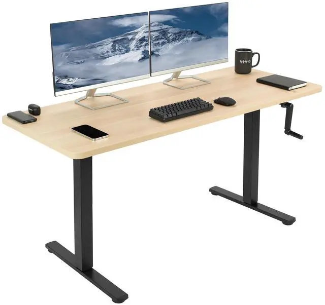 Transform your workstation to accommodate an active work life with the Light Wood / Black 60" x 24" Manual Height Adjustable Desk (DESK-KIT-MB6C) from VIVO! Finding a healthy balance between sitting and standing throughout the long work day is made possible with manual height adjustment, telescopic legs, and an easy-to-use hand crank. The spacious table top provides room for dual monitor setups and important supplies so you can organize your workspace to fit your preferred layout. With a frame constructed of solid steel, this desk easily supports up to 110 lbs and is built to last. All necessary hardware and instructions are provided, so you can get your new workstation assembled and taking your processes to new heights!