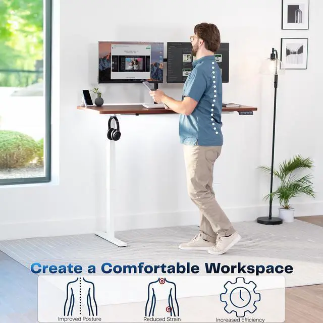 Transform your workstation to accommodate an active work life with the Dark Walnut / White 60" x 24" Electric Desk (DESK-KIT-1W6D) from VIVO! Finding a healthy balance between sitting and standing throughout the long work day is made possible with electric height adjustment, telescopic legs, and a simple push-button controller featuring 4 memory presets. The spacious table top provides room for dual monitor setups and important supplies so you can organize your workspace to fit your preferred layout. With a frame constructed of solid steel, this desk supports up to 220 lbs and is built to last. Cable management clips keep cords and cables neatly organized and hidden from view for a tidy workspace that encourages concentration. All hardware and instructions are provided, so you can get your new workstation assembled and experience your very own standing desk in no time!