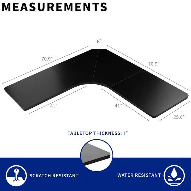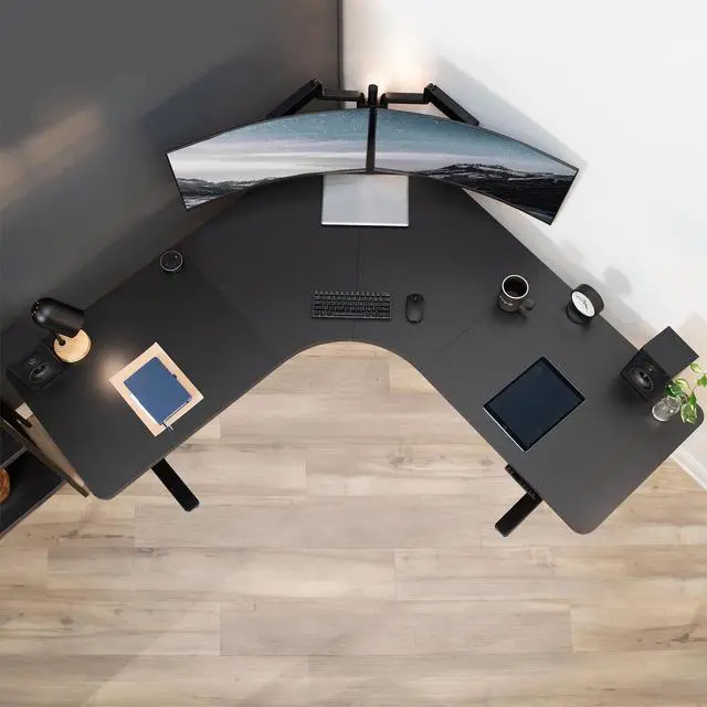 Find the perfect table top solution for your L-shaped standing desk frame with Black 71 x 71 Curved Corner Table Top (DESK-TOP2CB) from VIVO! Featuring 4 sturdy sections of particle board in a modern black color, this product provides the finishing touch to your adjustable workstation with a curved corner design! Go from sitting to standing with your equipment and accessories safely resting on this spacious surface. Compatible with both manual and electric corner frames that support the large size, this table top gives you options! Whether you're creating your very first sit to stand workstation or you need a replacement part, this desk surface was built to last! Instructions are provided to get your new platform attached to your current desk frame in no time!