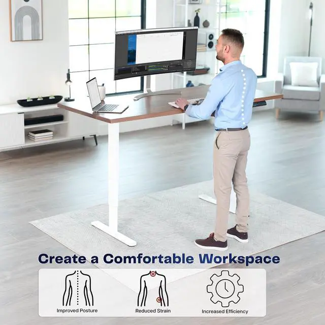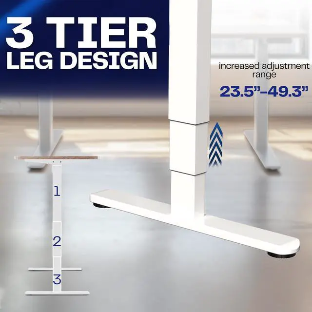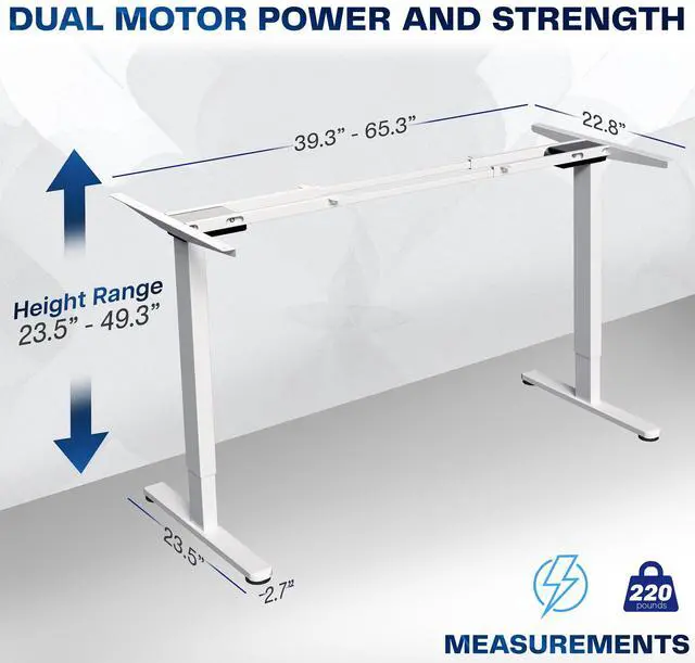 Create your very own active workstation with the White Electric Dual Motor Desk Frame (DESK-V103EW) from VIVO! Sit or stand on demand throughout the busy day with a simple push-button controller featuring 3 memory settings. This solid frame has dual thermal motors and 3-stage telescopic height adjustment columns that give ultimate support and keep your devices safe and secure. The motors feature overload and heat protection to ensure this desks safety and longevity. Step-by-step instructions are provided for assembly, and the advanced frame design reduces set-up time so you can enjoy your new standing desk legs as soon as possible!