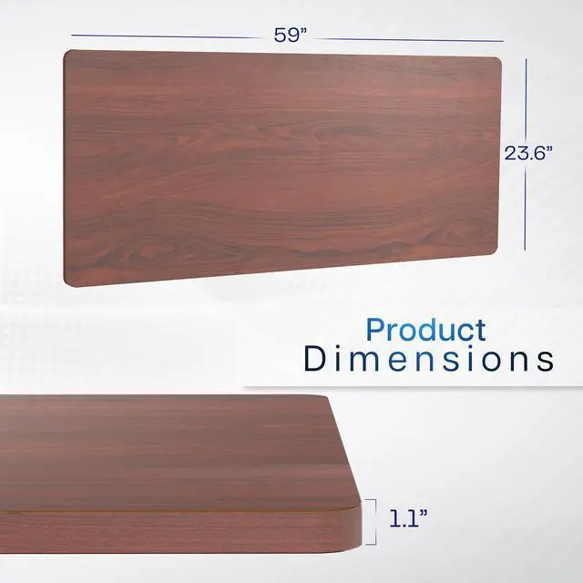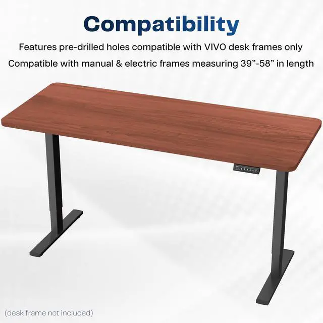 Find the perfect table top solution for your standing desk frame with DESK-TOP60D from VIVO! Featuring solid particle board in an attractive dark walnut color, this product provides the finishing touch to your adjustable workstation. Go from sitting to standing with all of your equipment and accessories safely resting on this sturdy surface. Compatible with both manual and electric frames measuring 39” to 58” in length, this table top gives you options! Whether you're creating your very first sit to stand workstation or you need a replacement part, this desk surface was built to last! All of the necessary instructions are provided to get your new platform attached to your current desk frame in no time!