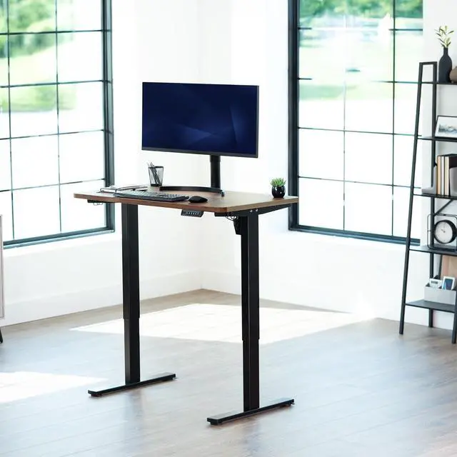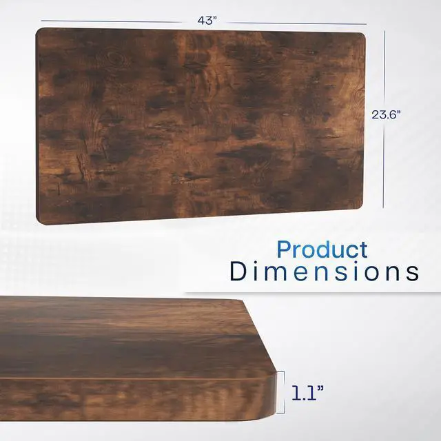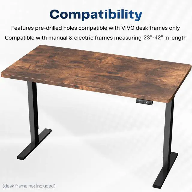 Find the perfect space efficient table top solution for your standing desk frame with Vintage Brown 43" x 24" Table Top (DESK-TOP43N) from VIVO! Featuring solid particle board in an attractive vintage brown color, this product provides the finishing touch to your adjustable workstation. Go from sitting to standing with all of your equipment and accessories safely resting on this sturdy surface. Compatible with both manual and electric frames measuring 23 to 42 in length, this table top gives you options! Whether you're creating your very first sit to stand workstation or you need a replacement part, this desk surface was built to last! All of the necessary instructions are provided to get your new platform attached to your current desk frame in no time!