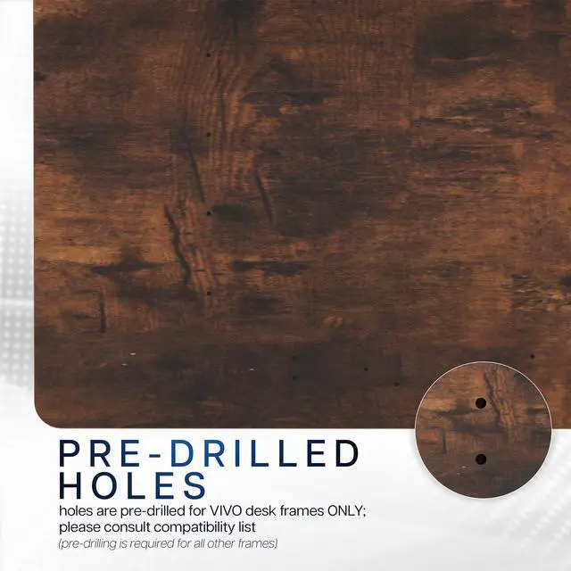 Please Note: The pre-drilled holes fit our VIVO desk frame models. Pre-drilling will be required to fit most other desk frames