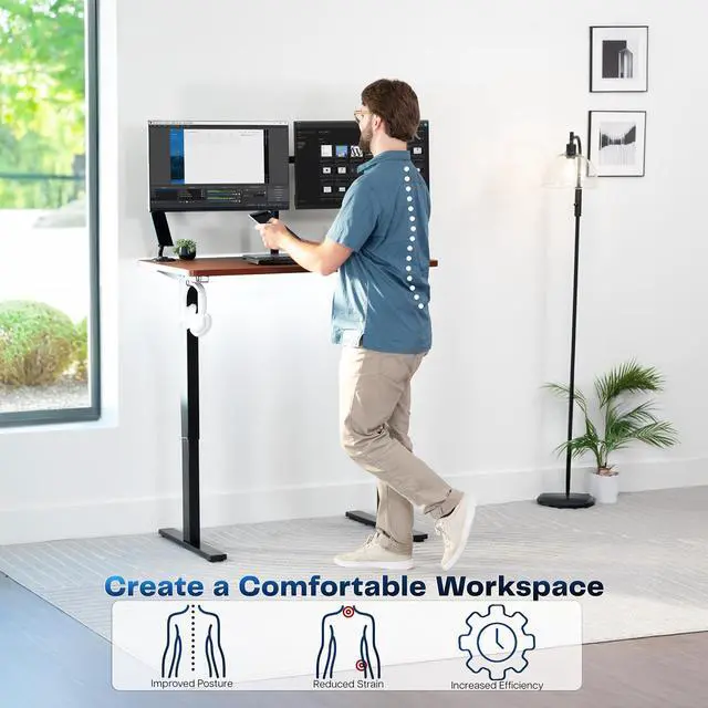 Transform your workstation to accommodate an active work life with the Dark Walnut / Black 43 x 24 Electric Desk (DESK-KIT-1B4D) from VIVO! Finding a healthy balance between sitting and standing throughout the long work day is made possible with electric height adjustment, telescopic legs, and a simple push button controller featuring 4 memory presets. The space-efficient table top provides room for dual monitor setups and important supplies so you can organize your workspace to fit your preferred layout. With a frame constructed of solid steel, this desk supports up to 176 lbs and is built to last. Cable management clips keep cords and cables neatly organized and hidden from view for a tidy workspace that encourages concentration. All hardware and instructions are provided, so you can get your new workstation assembled and experience your very own standing desk in no time!