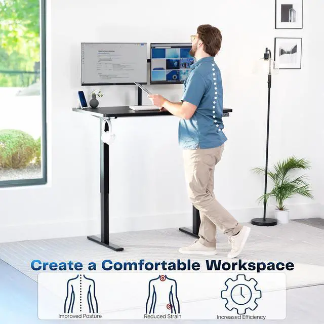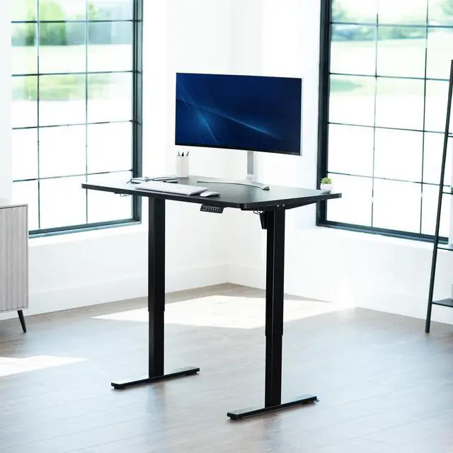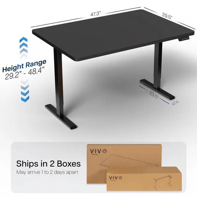 Transform your workstation to accommodate an active work life with the Black 48" x 30" Electric Desk (DESK-KIT-1B5B) from VIVO! Finding a healthy balance between sitting and standing throughout the long work day is made possible with electric height adjustment, telescopic legs, and a simple push-button controller featuring 4 memory presets. The extra deep table top provides room for dual-monitor setups and important supplies so you can organize your workspace to fit your desired layout. With a frame constructed of solid steel, this desk supports up to 220 lbs and is built to last. All hardware and instructions are provided, so you can get your new workstation assembled and experience your very own standing desk in no time!