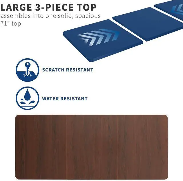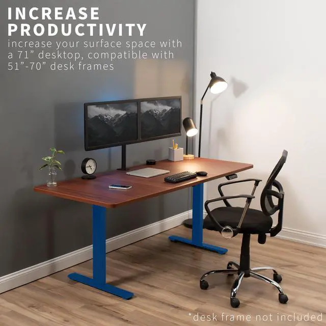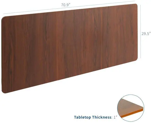 Find the perfect table top solution for your standing desk frame with Dark Walnut 71" x 30" Table Top (DESK-TOP72-30D) from VIVO! Featuring an extra spacious surface in a modern dark walnut color, this product provides the finishing touch to your adjustable workstation. Go from sitting to standing with all of your equipment and accessories safely resting on this sturdy platform. Compatible with both manual and electric frames measuring 51 to 70 in length, this extra-wide table top gives you options! Whether you're creating your very first sit to stand workstation or you need a replacement part, this desk surface was built to last! All hardware and instructions are provided to get your new platform assembled and attached to your current desk frame in no time!