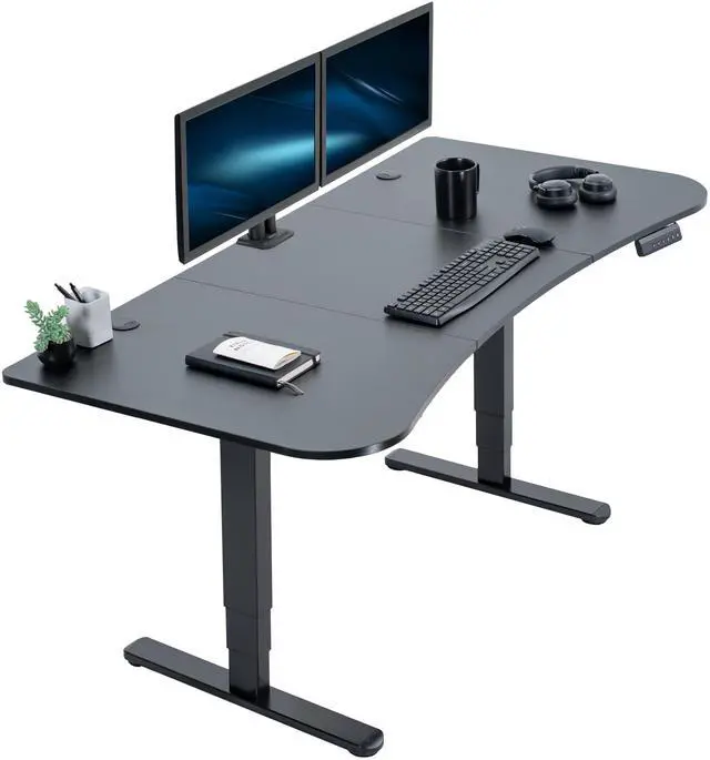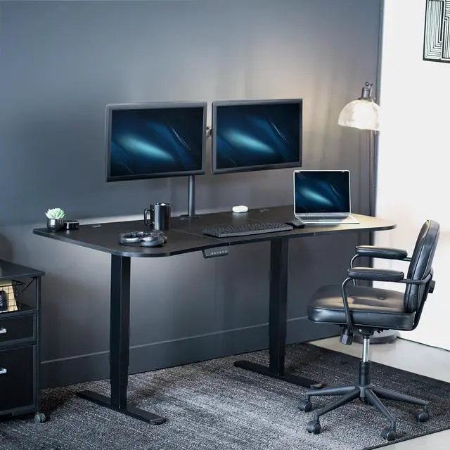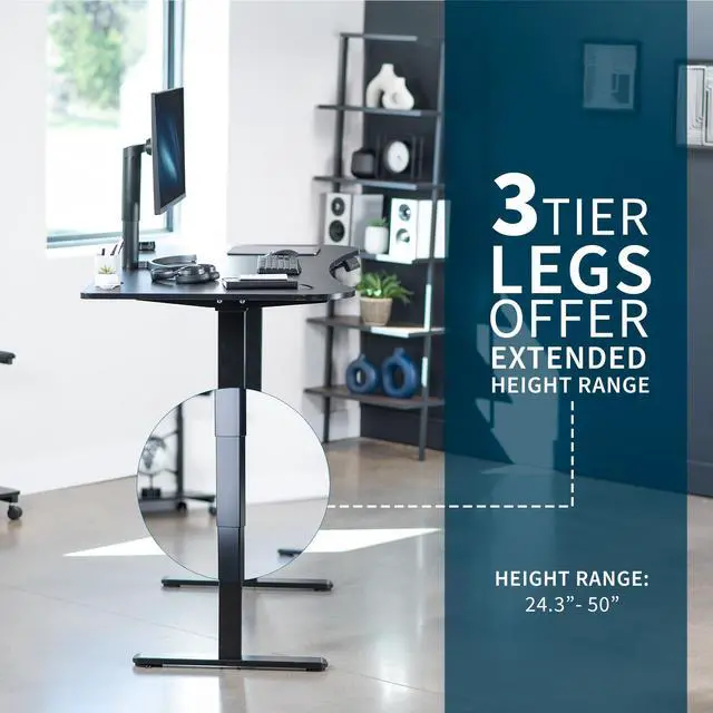 Transform your workstation to accommodate an active work life with the Black 63" x 32" Electric Desk (DESK-KIT-2B1B) from VIVO! Find that healthy balance between sitting and standing throughout the long work day with smooth height adjustment, powerful dual motors, and a simple push-button controller featuring 3 memory presets. With a frame constructed of solid steel, this desk supports up to 220 lbs when connected to a power source. The table top comes packaged in 3 sections, and all hardware is provided to get your desk frame put together and installed to your desktop in no time!