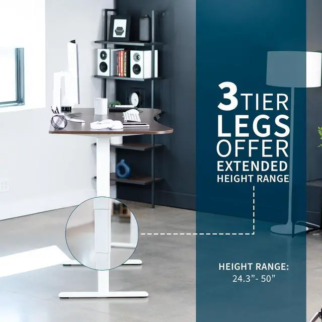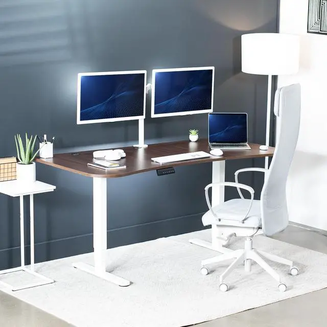 Transform your workstation to accommodate an active work life with the Dark Walnut / White 63" x 32" Electric Desk (DESK-KIT-2W1D) from VIVO! Find that healthy balance between sitting and standing throughout the long work day with smooth height adjustment, powerful dual motors, and a simple push-button controller featuring 3 memory presets. With a frame constructed of solid steel, this desk supports up to 220 lbs when connected to a power source. The table top comes packaged in 3 sections, and all hardware is provided to get your desk frame put together and installed to your desktop in no time!