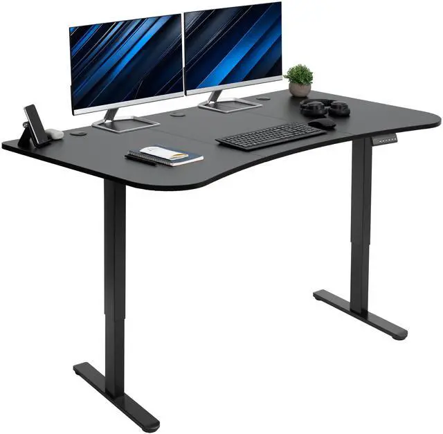 Transform your workstation to accommodate an active work life with the Black 63" x 32" Dual Motor Electric Desk (DESK-KIT-E2B1B) from VIVO! Find that healthy balance between sitting and standing throughout the long work day with electric height adjustment, telescopic legs, and a simple push-button controller featuring 3 memory presets. With a frame constructed of solid steel, this desk supports up to 220 lbs and is built to last. The table top comes packaged in 3 sections, and all hardware is provided to get your desk frame put together and installed to your desktop in no time!