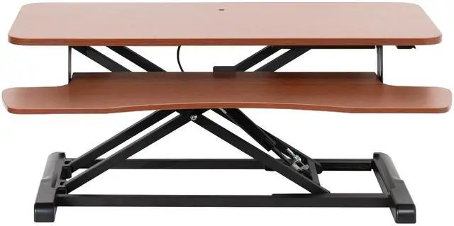 Enhance your work experience with Dark Walnut / Black 36 Desk Riser (DESK-V036KA) from VIVO! Transitioning between sitting and standing throughout the long work day provides numerous health benefits such as increased blood flow and reduced aches and pains. The solidly built desktop supports up to 33 lbs, easily holding multiple monitors or laptop and monitor combinations. It also features pneumatic spring lift that allows simple and smooth height adjustment at the squeeze of a handle. The dual tiered design lets you customize your work area to create the workflow you need, and the keyboard tray is removable using the provided hex tool. All hardware and instructions are provided so you can get your new desk riser assembled in no time!