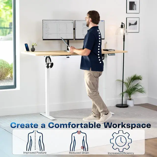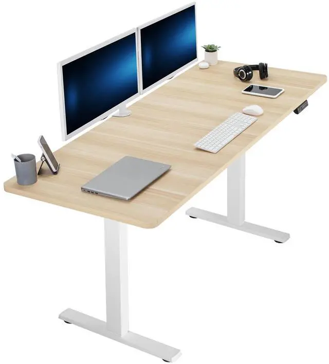 Transform your workstation to accommodate an active work life with the Light Wood / White 71" x 30" Electric Desk (DESK-KIT-1W7C) from VIVO! Finding a healthy balance between sitting and standing throughout the long work day is made possible with electric height adjustment, telescopic legs, and a memory control panel. The spacious table top provides room for dual monitor setups and important supplies so you can organize your workspace to fit your preferred layout. With a frame constructed of solid steel, this desk supports up to 220 lbs and is built to last. All hardware and instructions are provided, so you can get your new workstation assembled and taking you to new heights!