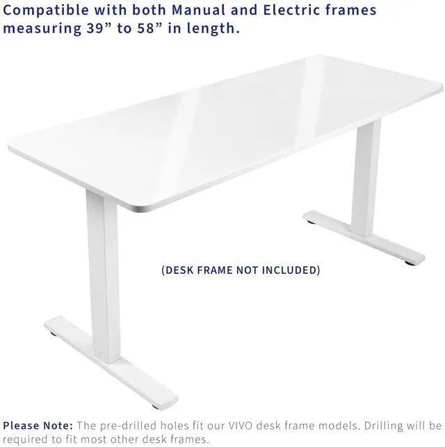 Please Note: The pre-drilled holes fit our VIVO desk frame models. Pre-drilling will be required to fit most other desk frames