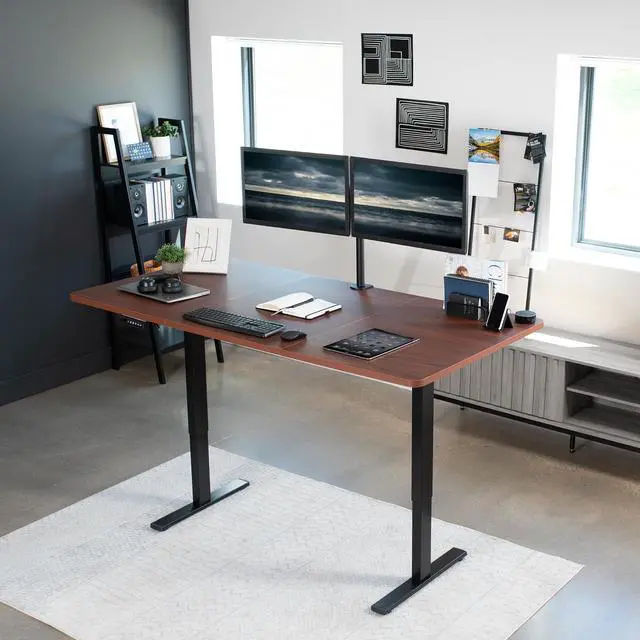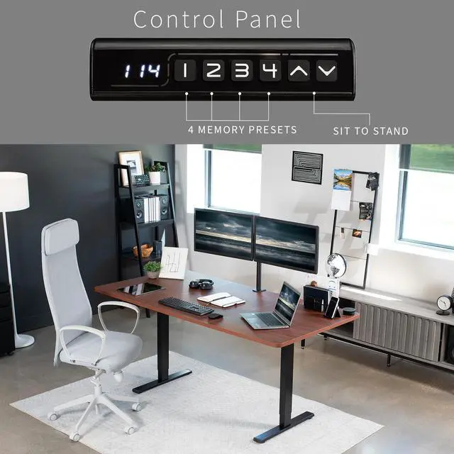 Transform your workstation to accommodate an active work life with the Dark Walnut / Black 71" x 36" Electric Desk (DESK-KIT-1B7D-36) from VIVO! Finding a healthy balance between sitting and standing throughout the long work day is made possible with electric height adjustment, telescopic legs, and a memory control panel. The spacious table top provides room for dual monitor setups and important supplies so you can organize your workspace to fit your preferred layout. With a frame constructed of solid steel, this desk supports up to 176 lbs and is built to last. All hardware and instructions are provided, so you can get your new workstation assembled and taking you to new heights!