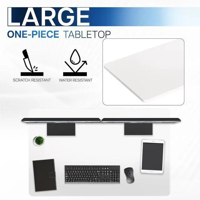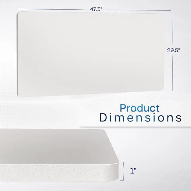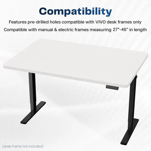 Find the perfect table top solution for your standing desk frame with White 48" x 30" Table Top (DESK-TOP48-30W) from VIVO! Featuring a solid particle board surface in a modern white color, this product provides the finishing touch to your adjustable workstation. Go from sitting to standing with all of your equipment and accessories safely resting on this sturdy surface. Compatible with both manual and electric frames measuring 27 to 46 in length, this extra-wide table top gives you options! Whether you're creating your very first sit to stand workstation or you need a replacement part, this desk surface was built to last! All of the necessary instructions are provided to get your new platform attached to your current desk frame in no time!