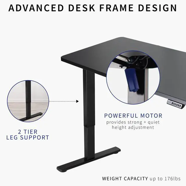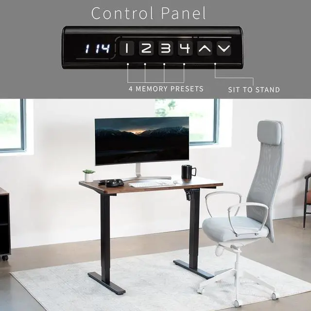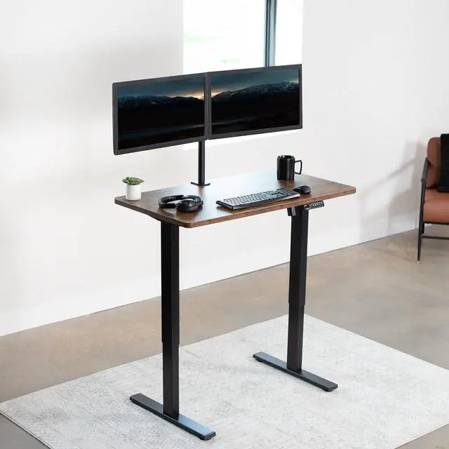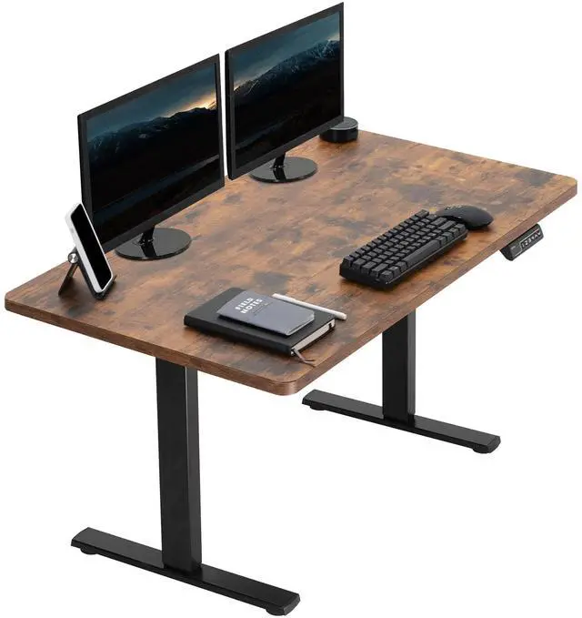Transform your workstation to accommodate an active work life with the Vintage Brown / Black 43 x 24 Electric Desk (DESK-KIT-1B4N) from VIVO! Finding a healthy balance between sitting and standing throughout the long work day is made possible with electric height adjustment, telescopic legs, and a simple push button controller featuring 4 memory presets. The space-efficient table top provides room for dual monitor setups and important supplies so you can organize your workspace to fit your preferred layout. With a frame constructed of solid steel, this desk supports up to 176 lbs and is built to last. Cable management clips keep cords and cables neatly organized and hidden from view for a tidy workspace that encourages concentration. All hardware and instructions are provided, so you can get your new workstation assembled and experience your very own standing desk in no time!