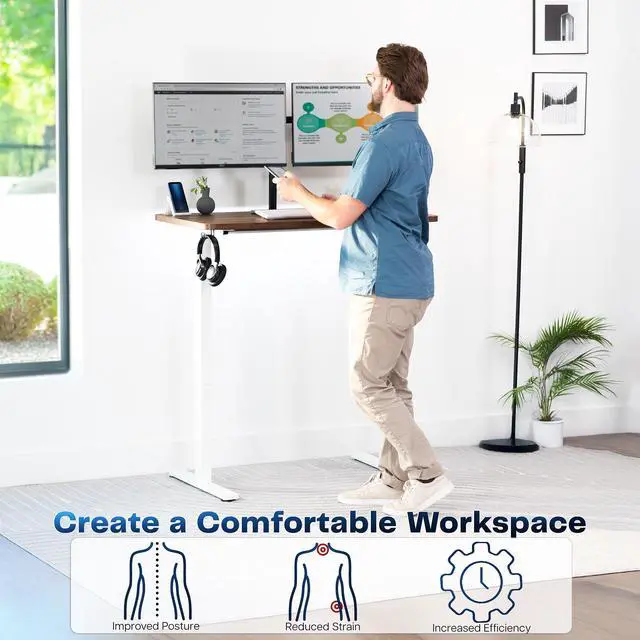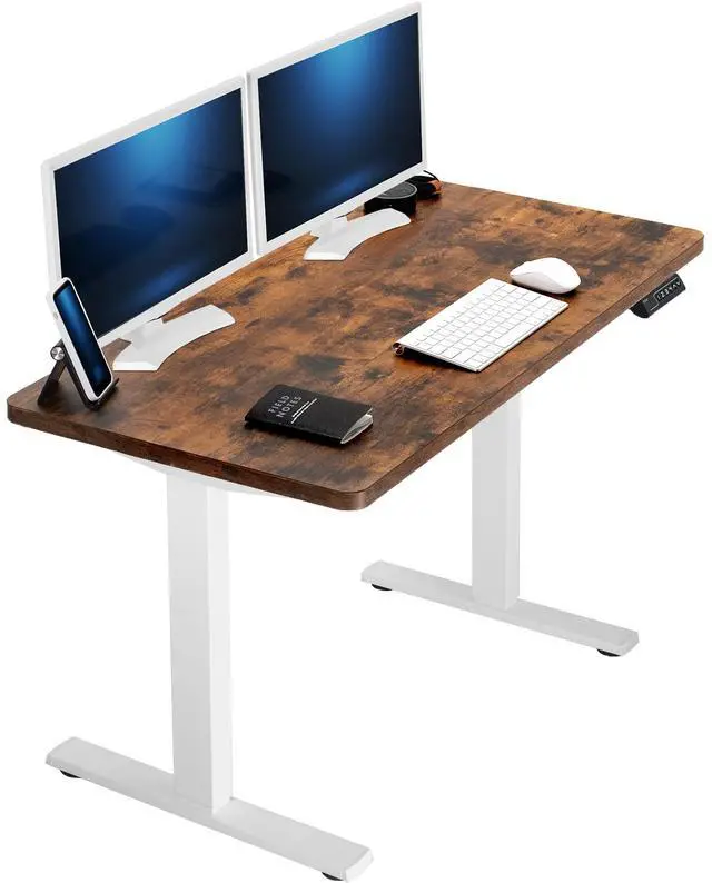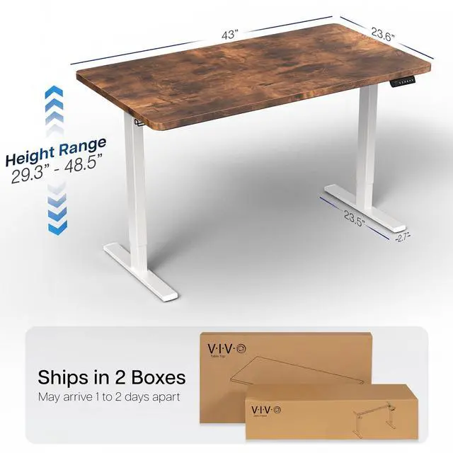 Transform your workstation to accommodate an active work life with the Vintage Brown / White 43 x 24 Electric Desk (DESK-KIT-1W4N) from VIVO! Finding a healthy balance between sitting and standing throughout the long work day is made possible with electric height adjustment, telescopic legs, and a simple push button controller featuring 4 memory presets. The space-efficient table top provides room for dual monitor setups and important supplies so you can organize your workspace to fit your preferred layout. With a frame constructed of solid steel, this desk supports up to 220 lbs and is built to last. Cable management clips keep cords and cables neatly organized and hidden from view for a tidy workspace that encourages concentration. All hardware and instructions are provided, so you can get your new workstation assembled and experience your very own standing desk in no time!