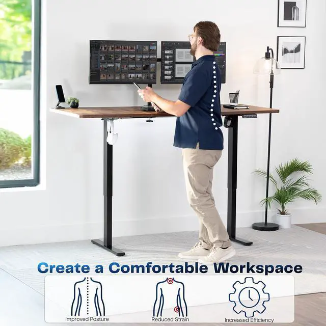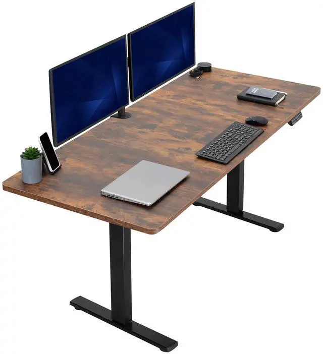 Transform your workstation to accommodate an active work life with the Vintage Brown / Black 71" x 30" Electric Desk (DESK-KIT-1B7N) from VIVO! Finding a healthy balance between sitting and standing throughout the long work day is made possible with electric height adjustment, telescopic legs, and a memory control panel. The spacious table top provides room for dual monitor setups and important supplies so you can organize your workspace to fit your preferred layout. With a frame constructed of solid steel, this desk supports up to 220 lbs and is built to last. All hardware and instructions are provided, so you can get your new workstation assembled and taking you to new heights!