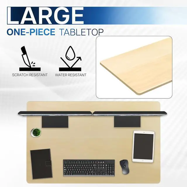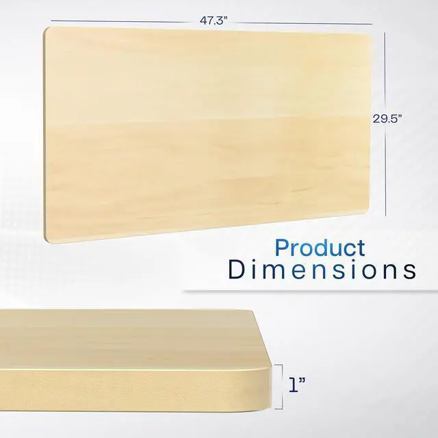 Find the perfect table top solution for your standing desk frame with Light Wood 48" x 30" Table Top (DESK-TOP48-30C) from VIVO! Featuring a solid particle board surface in a modern light wood color, this product provides the finishing touch to your adjustable workstation. Go from sitting to standing with all of your equipment and accessories safely resting on this sturdy surface. Compatible with both manual and electric frames measuring 27 to 46 in length, this extra-wide table top gives you options! Whether you're creating your very first sit-to-stand workstation or you need a replacement part, this desk surface was built to last! All instructions are provided to get your new platform attached to your current desk frame in no time!