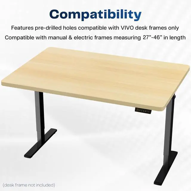 - Compatible with both manual and electric frames measuring 27 to 46 in length (desk frame not included)