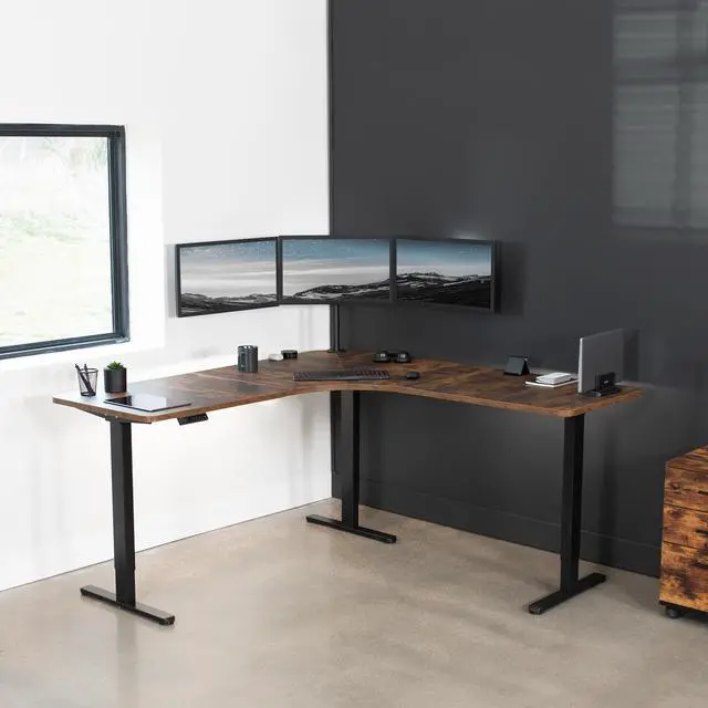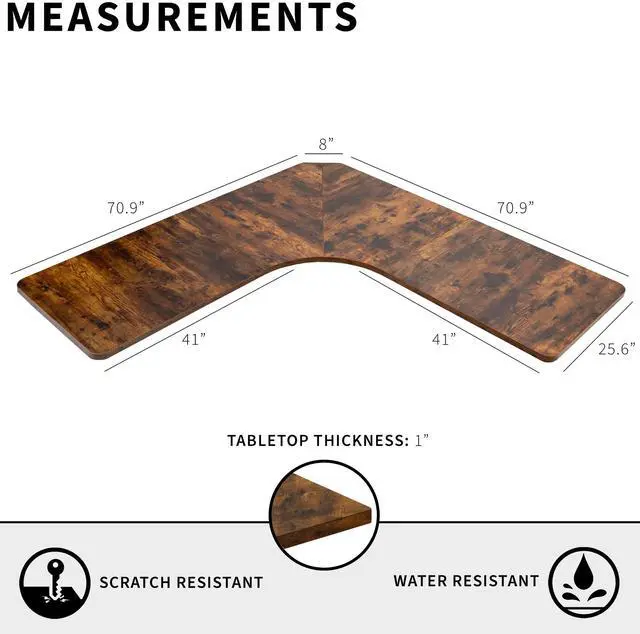 Find the perfect table top solution for your L-shaped standing desk frame with Vintage Brown 71 x 71 Curved Corner Table Top (DESK-TOP2CN) from VIVO! Featuring 4 sturdy sections of particle board in a modern vintage brown color, this product provides the finishing touch to your adjustable workstation with a curved corner design! Go from sitting to standing with your equipment and accessories safely resting on this spacious surface. Compatible with both manual and electric corner frames that support the large size, this table top gives you options! Whether you're creating your very first sit to stand workstation or you need a replacement part, this desk surface was built to last! Instructions are provided to get your new platform attached to your current desk frame in no time!
