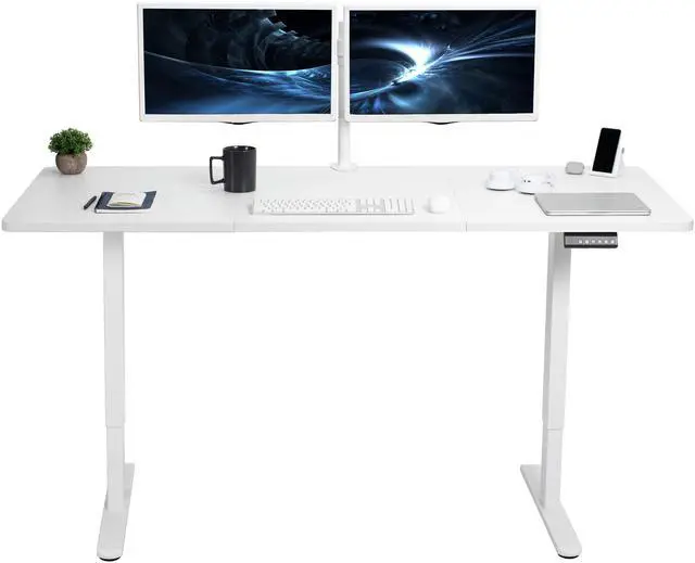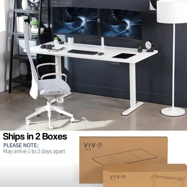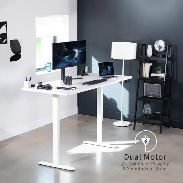 Transform your workstation to accommodate an active work life with the White 71" x 30" Dual Motor Electric Desk (DESK-KIT-E2W7W) from VIVO! Finding a healthy balance between sitting and standing throughout the long work day is made possible with electric height adjustment, telescopic legs, and a push-button control panel featuring 3 memory presets. The spacious, extra-deep table top provides room for multi-monitor setups and important supplies so you can organize your workspace to fit your preferred layout. With a frame constructed of solid steel, this desk supports up to 220 lbs and is built to last. All hardware and instructions are provided, so you can get your new workstation assembled and taking you to new heights!