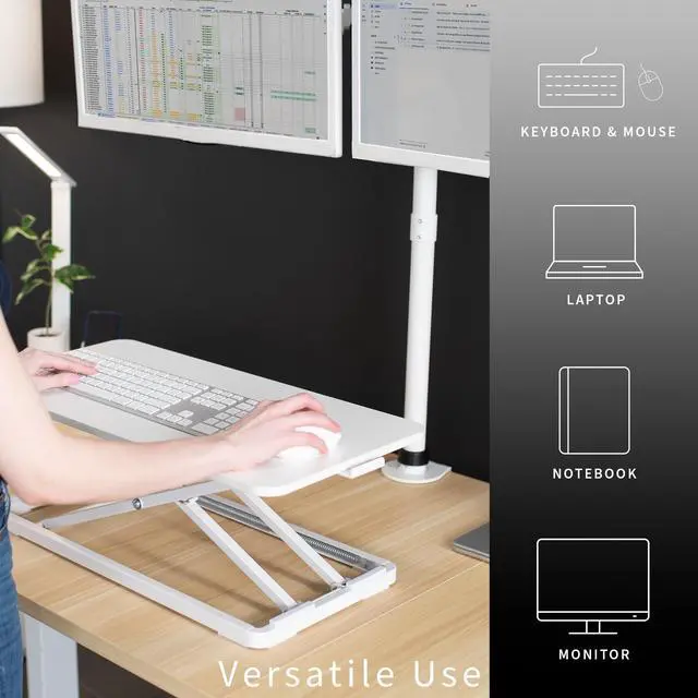 Make your keyboard as ergonomic as the rest of your workstation with the White Keyboard Riser (DESK-V024AW) from VIVO! If youre searching for a way to elevate your keyboard and mouse to meet the rest of your workspace, look no further. The scissor lift design makes height adjustment a breeze with 5 height settings ranging from 8.5 (lowest setting) to 15.6 (highest setting). Finding the right height for your keyboard has never been easier. The solid steel base and impact-resistant desktop are designed for excellent stability and long-lasting use so you can enjoy comfortable typing angles for years to come!