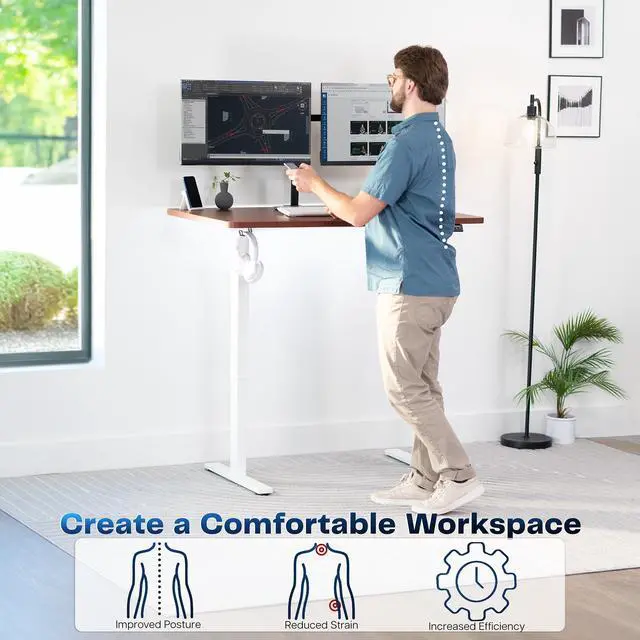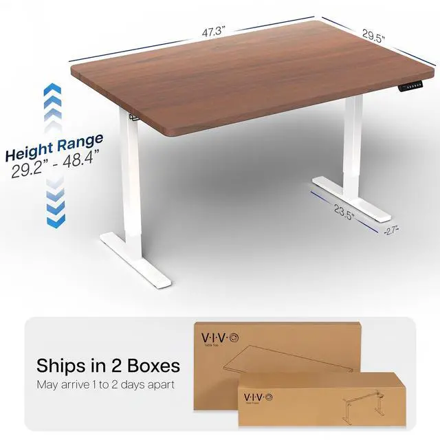 Transform your workstation to accommodate an active work life with the Dark Walnut / White 48" x 30" Electric Desk (DESK-KIT-1W5D) from VIVO! Finding a healthy balance between sitting and standing throughout the long work day is made possible with electric height adjustment, telescopic legs, and a simple push-button controller featuring 4 memory presets. The extra deep table top provides room for dual-monitor setups and important supplies so you can organize your workspace to fit your desired layout. With a frame constructed of solid steel, this desk supports up to 220 lbs and is built to last. All hardware and instructions are provided, so you can get your new workstation assembled and experience your very own standing desk in no time!