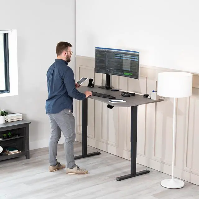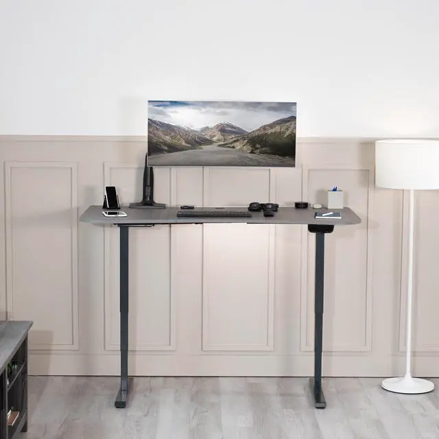 Find the perfect desktop solution for your standing desk frame with DESK-TOP1G from VIVO! Featuring solid particle board designed for sturdiness and durability, this product provides the finishing touch to your adjustable workstation. Go from sitting to standing in an instant with all of your equipment and accessories safely resting on this solid surface. Compatible with both manual and electric frames measuring 43" to 62" in length, this tabletop gives you options. Whether you're creating your very first sit-to-stand workstation or you need a replacement part, this desk surface was built to last! All of the hardware and instructions are provided to get your panels assembled and installed to your desk frame in no time!